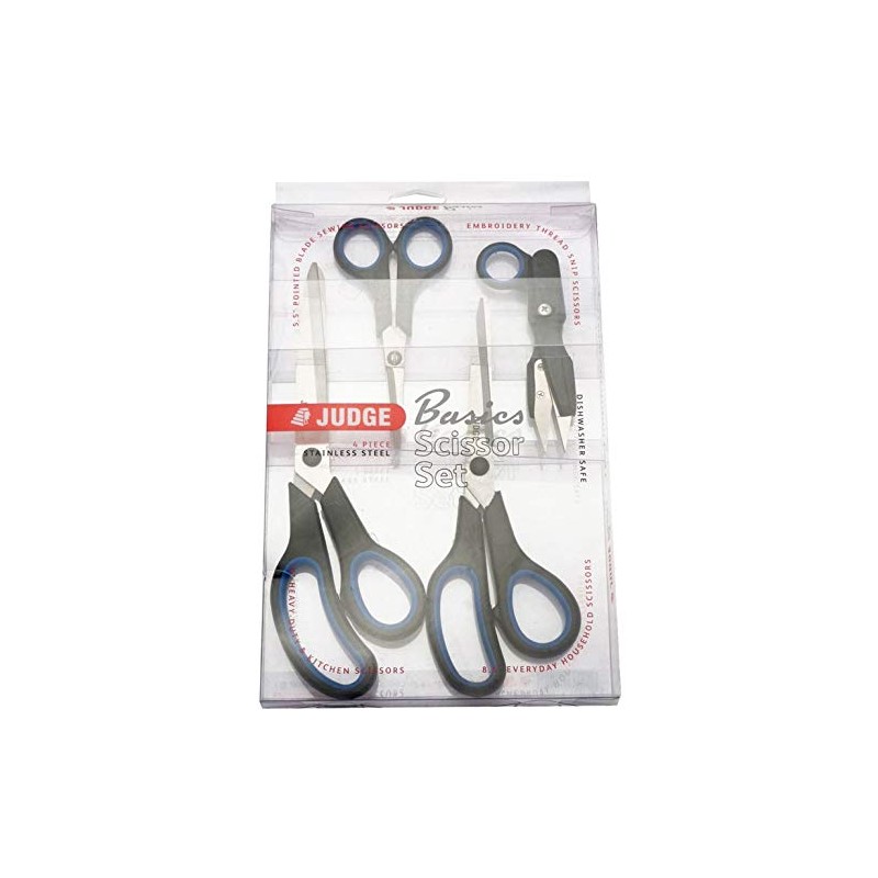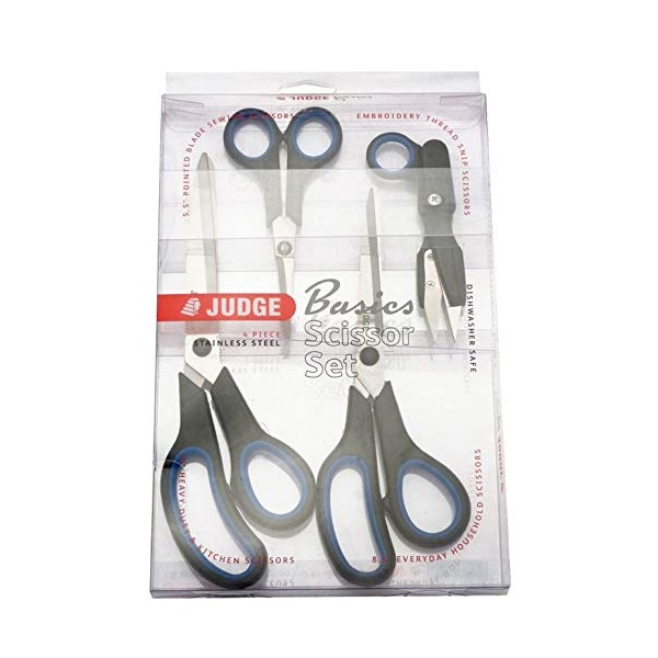Judge JZ445 Set of 4 Scissors, Right Handed Scissors with Soft Grip Handles and Stainless Steel Blades, Dishwasher Safe - 25 Year Guarantee