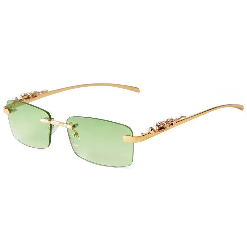 JUDOO Retro Rimless Rectangle Sunglasses for Men Women Trendy Frameless Tinted Lens Eyewear, Gold/Green
