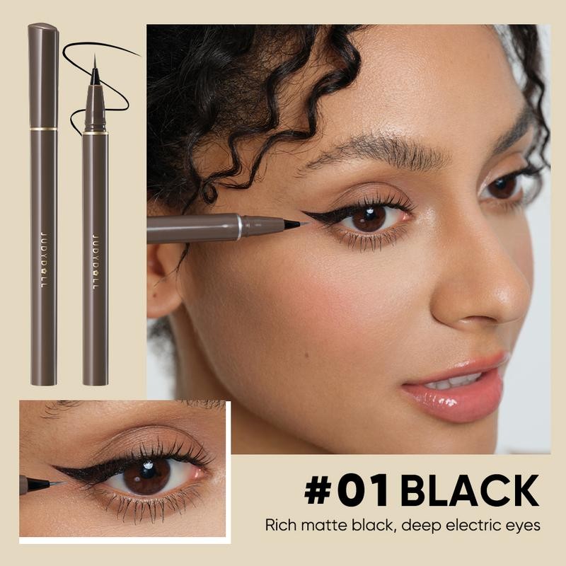 JUDYDOLL Ultra-Fine Liquid Eyeliner, Waterproof Liquid Eye Liner, Stay All Day Makeup With Fine Brush Tip, Lasting Satin Finish, Smudge-Proof & Transfer-Resistant, Suitable For Sensitive Eyes:_#02 Deep Brown