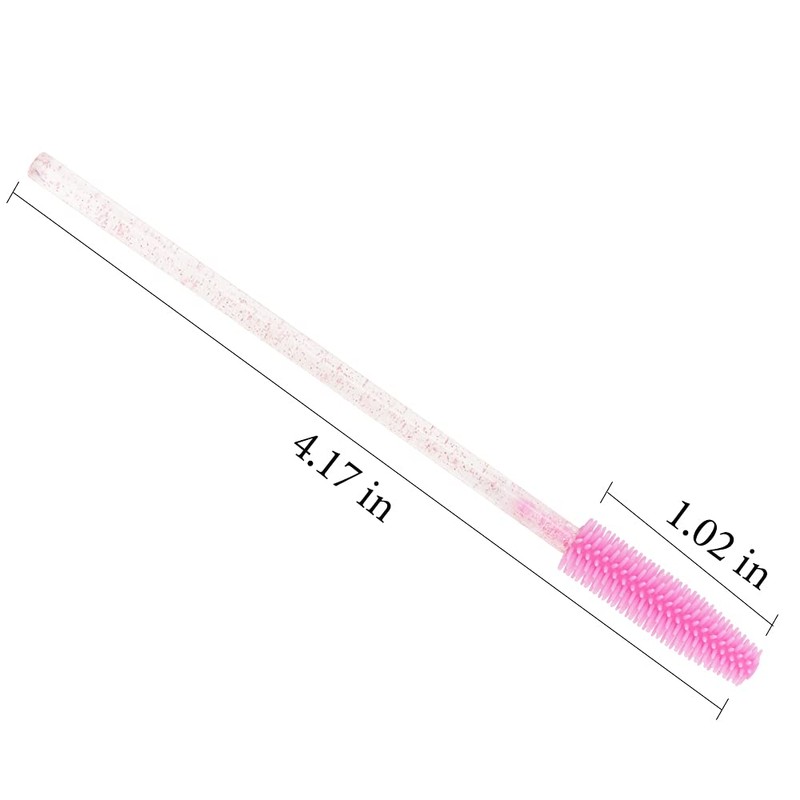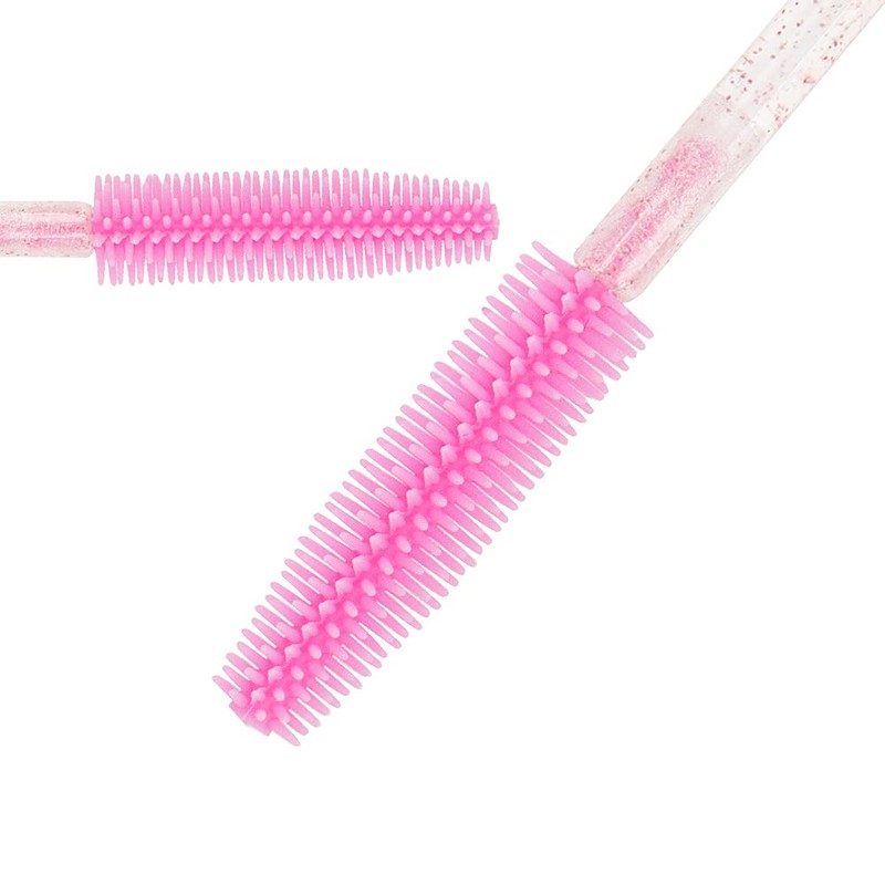 Juego de 100 brochas desechables de silicona suave con mango de purpurina para pestañas, aplicador de brochas de maquillaje, color rosa