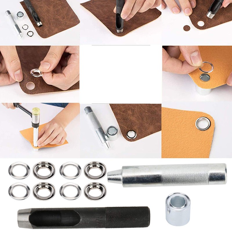 - ★ Aplicación: juego de herramientas conveniente, fácil de instalar, la herramienta perforadora puede hacer un agujero en las artesanías de cuero y luego martillarla para juntar los ojales. Ideal para lonas, lonas, tiendas de campaña, otros artículos de tela, etc.