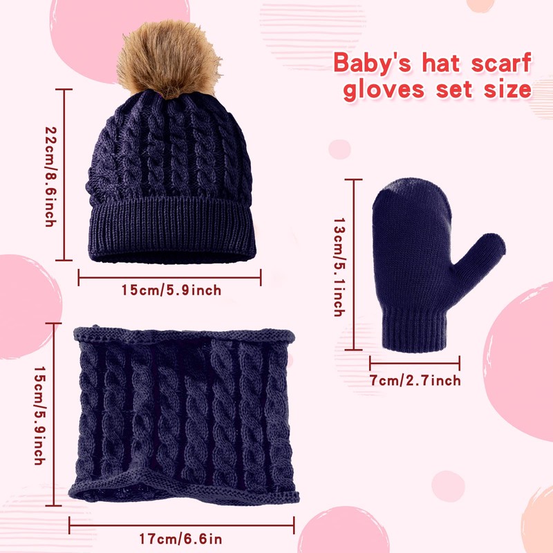 - Bonito diseño: la gorra de punto para bebé está diseñada en color sólido con pompones suaves y bonitos, la tela de punto da al conjunto de 3 piezas una buena elasticidad y se puede estirar para adaptarse mejor a la cabeza y el cuello del niño. Utilízalos para mantener a los bebés calientes y lindos al mismo tiempo.