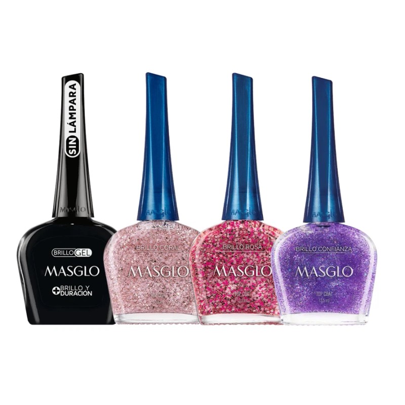 Juego de 4 esmaltes de uas MASGLO Brillos ...
