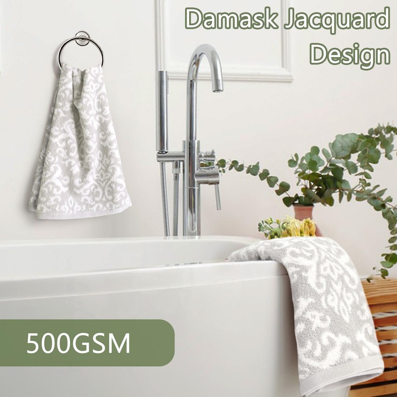 El juego de toallas VOOVA & MOVAS combina suavidad de lujo y máxima absorción. Están fabricados con bucles de 100% algodón y un tela de cero torsión que absorbe rápidamente el agua. Saca tu encanto elegante y elegante decorando tu baño con este juego de toallas de mano de damasco.