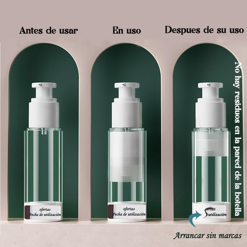 - 🧴 【Fácil de llenar y limpiar】 Use los artículos para el cuidado de la piel / tocador empacados en el recipiente lo antes posible, no exceda medio año y la limpieza se puede desinfectar con agua y alcohol, recuerde no usar agua caliente para limpiar. Diseño de vacío, bloqueo de impurezas, protección de vacío, prevención de la contaminación, limpio e higiénico, y sin desperdicio.