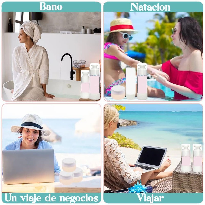 - 🧴 【Material de alta calidad】 La botella de viaje está hecha de cuerpo de botella AS de alta calidad y fondo de botella de material PP importado, que no es fácil de filtrar, rayar o romper. Dispensación al vacío, para evitar la contaminación, limpia e higiénica. Ideal para viajes dentro de una semana, viajes de trabajo y viajes personales.