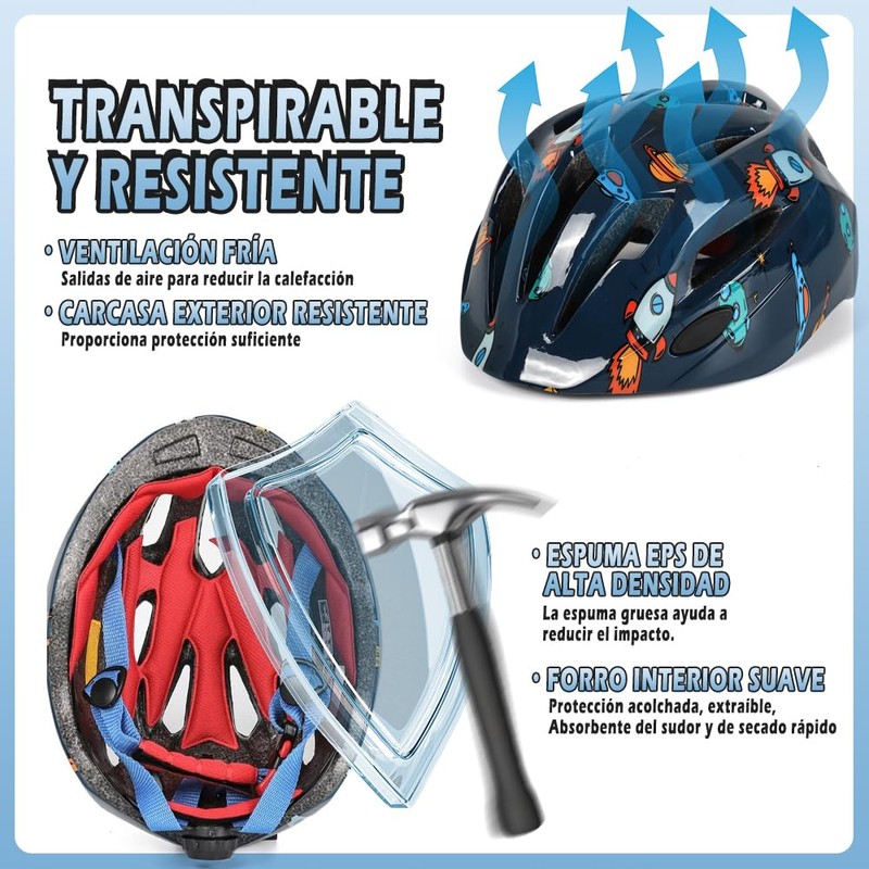 - 【🛴La Seguridad es lo Primero】Nuestro casco de seguridad para bicicleta para niños está hecho de una carcasa exterior de PC dura y una capa interior de espuma EPS. Las muñequeras para codos/rodillas están adoptadas con una carcasa de PVC de alta dureza antiarañazos acolchada con material EVA suave. Nuestro equipo de protección para niños brinda una mejor protección a sus hijos cuando andan en bicicleta o andan en patineta. *Cumple con la norma de seguridad de la CPSC de EE. UU. para cascos de bicicleta para personas de 5 años o más