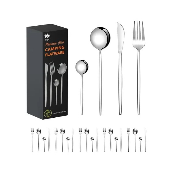 Este juego de cubiertos de 24 piezas combina elegancia y funcionalidad, fabricado con acero inoxidable de alta calidad que garantiza resistencia y durabilidad.