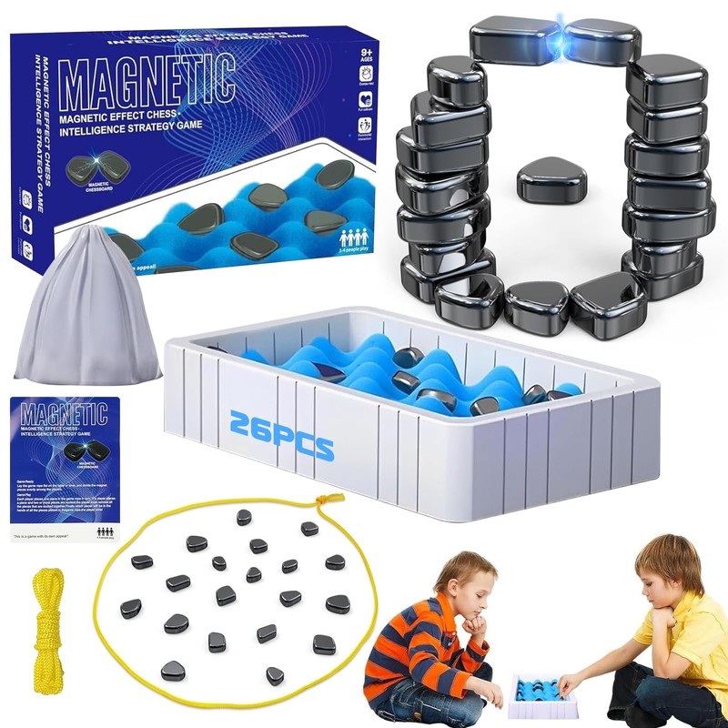 Juego De Imán De Mesa: Juego De Mesa De Ajedrez con Efecto Magnético, Juego De Ajedrez, Juego De Mesa De Piedra Magnética, Juego Educativo De Damas, Tablero De Piedra Magnético Portátil, Suministros