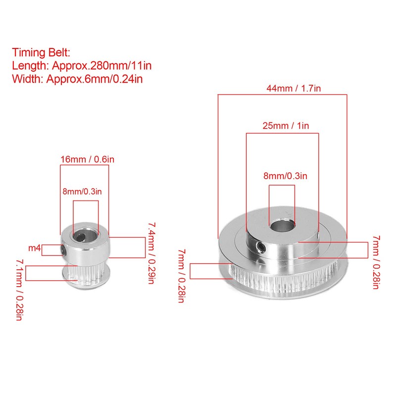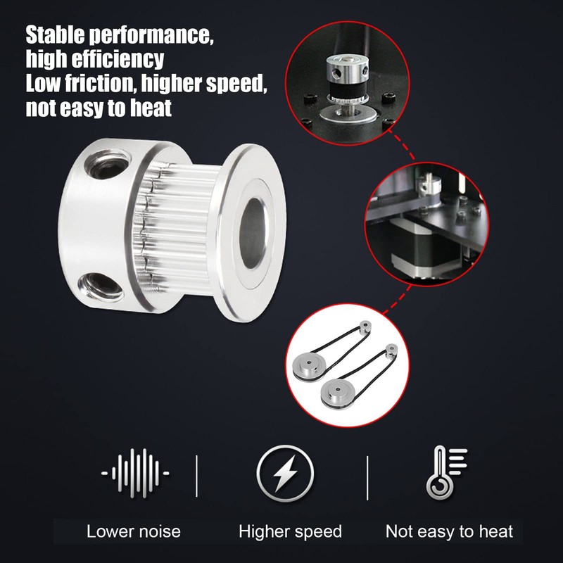 - Amplio propósito: este kit de polea se puede utilizar ampliamente en impresoras 3D, fresadoras, rectificadoras de engranajes, perforadoras, tornos CNC, talladoras de engranajes u otras ocasiones de transmisión mecánica.