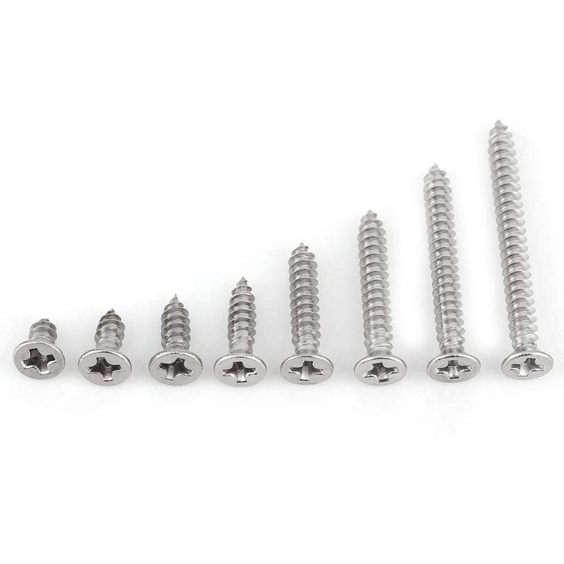 Juego de Tornillos Autorroscantes 200pcs / Set Tornillos de Metal de Acero Inoxidable Ss304 Pan/Flat/Truss Head m3 6mm ~ 30mm Surtido Hardware de Sujetadores ( B: Flat head )
