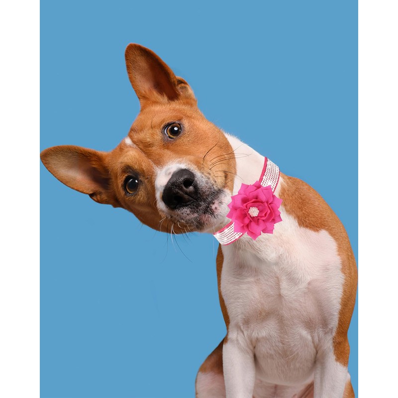 Jufoo Rhinestone Dog Collar for Small Medium Dogs Red Medium Dog Collar for Girl Female Dogs Flower Puppy Collar for Summer Spring Wedding Puppy Necklace Girl Dog Collar (Rose Red, L)