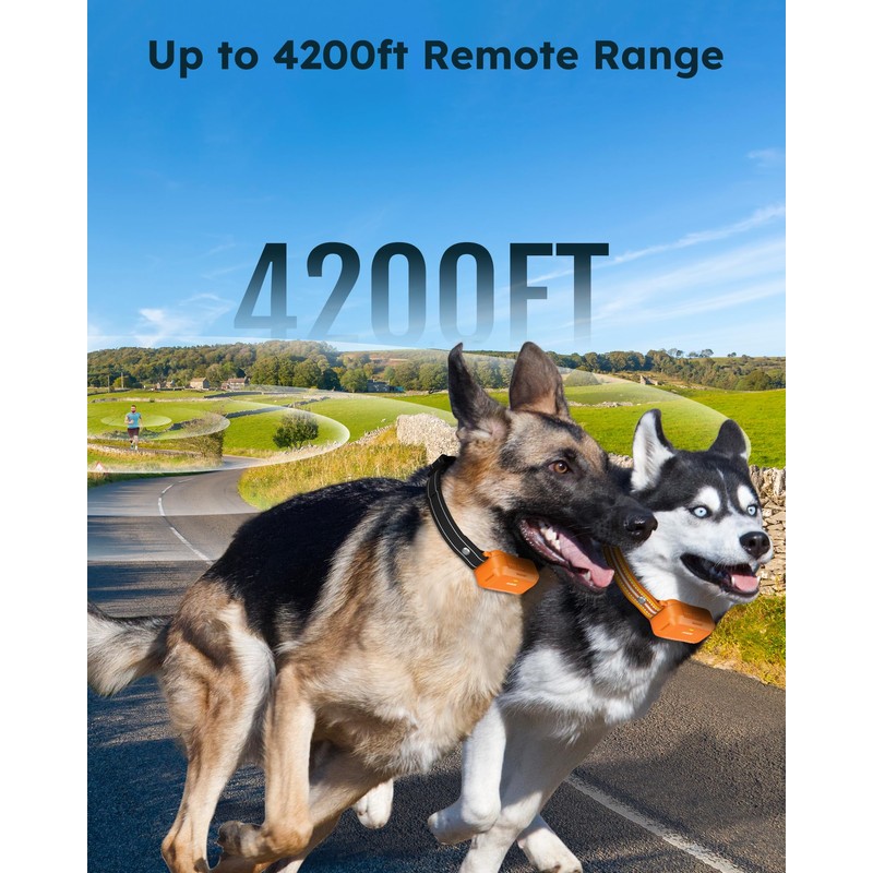 - 【Extended 4200FT Range & 2 Channel】With 4200FT impressive range, you can now have complete freedom while training your dog at the park, beach or in your backyard! The e collar supports 2 channels and has memory function for settings, easy to train 2 dogs simultaneously without resetting levels.