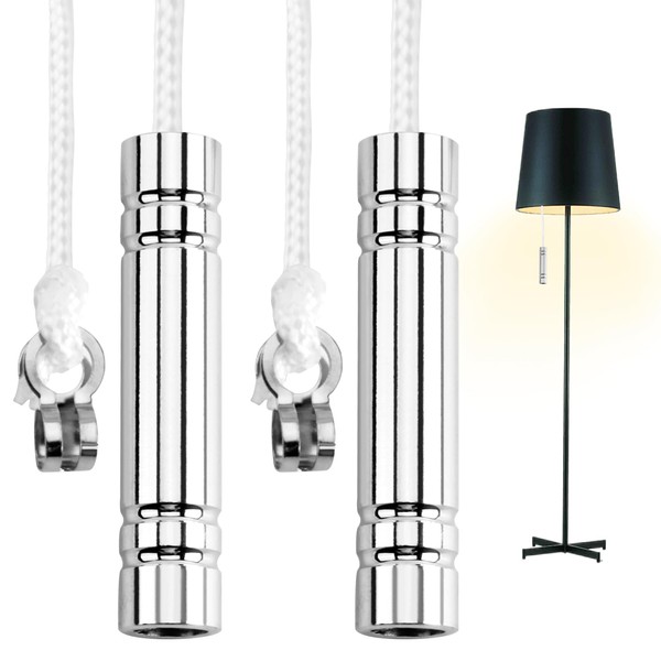 JUGCUT 2Pcs Light Pull Cord Handle for Bathroom, Cylindrical Pull Cord Handle with 150 cm White Pull Cord and Connector for Bathroom Toilet Light Ceiling Fan Switch Light Fixtures Chrome
