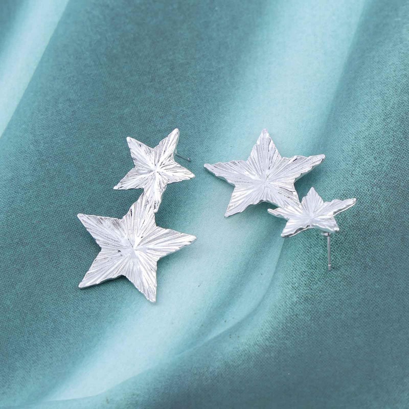 - Silver double star stud earrings.item details:handmade Item.size:as shown.color:silver.materials:ordinary alloy.location:ear.style:boho/vintage.there will be slight errors due to manual measurement.due to the shooting environment,there will be slight color difference