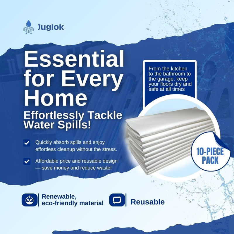 The Ultimate Water Absorbent Pads for Everyday Cleanup Needs!These water absorbent mats are designed to tackle a variety of household messes. Measuring 13.8" x 15.8", they offer reliable water absorption for everything from pipe leaks in the basement to kitchen spills and garage puddles. Crafted from soft non-woven fabric and cotton, they provide exceptional absorption while being gentle enough for pets.Why Choose These Water Absorbing Mats?Fast and Effective Water Absorption: Rapidly soak up spills and puddles, keeping floors dry and safe.Reusable Water Absorbing Pads: Wring out and reuse during a single cleanup, making them an eco-friendly choice.Family-Safe Water Absorbers: Soft materials ensure a safe cleaning solution for households with pets.Multi-Purpose Use: Whether it's rainwater in the garage or under-sink leaks, these water mats handle it all efficiently.Specifications: Dimensions: 13.8" x 15.8" (35cm x 40cm) Material: Non-woven fabric and cotton Package Includes: 10 water absorbent mats Note:Manual measurements may have slight deviations. Colors may appear differently due to lighting conditions.