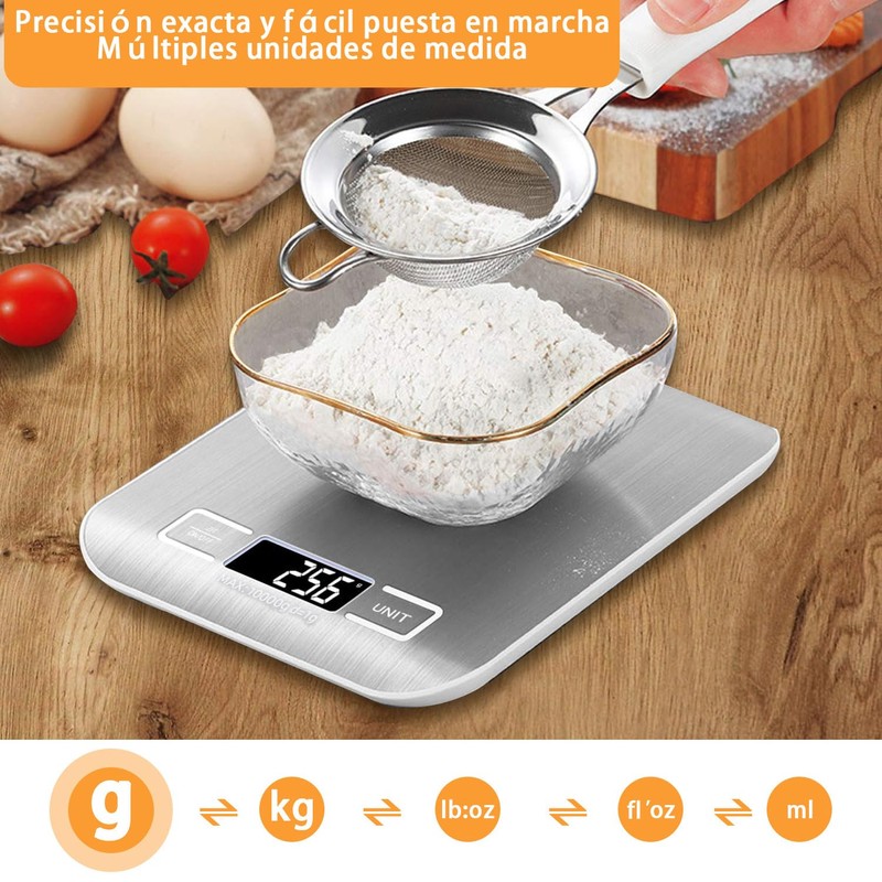 - 【Báscula de cocina recargable】La báscula de cocina se puede cargar con un cable USB para su uso en cualquier dispositivo USB, ahorrando en gastos de batería, y también funciona con 2 pilas AAA. Si olvida apagar la báscula o si tiene comida en sus manos, la báscula se apagará automáticamente para ahorrar batería