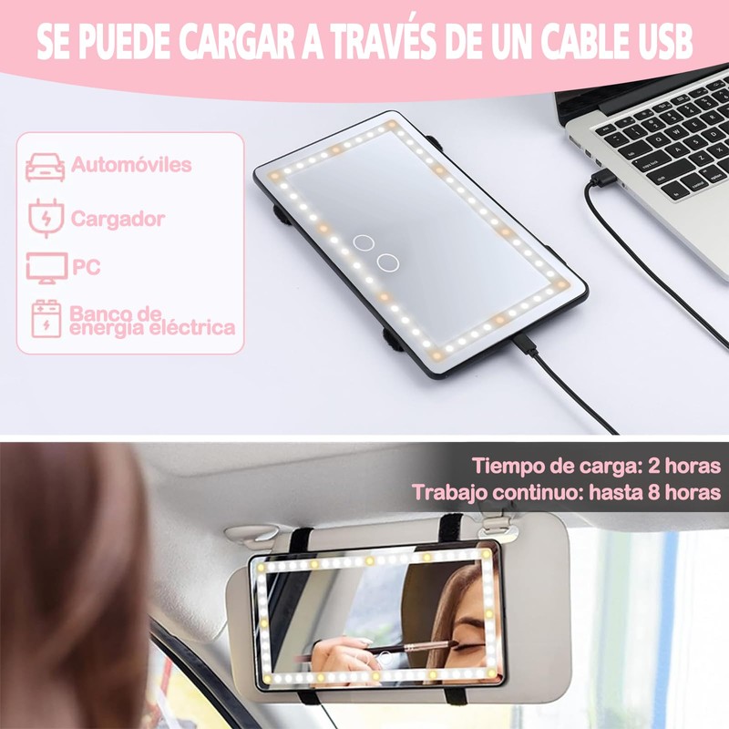 - 【Uso del USB Recarga】Este espejo de vanidad para auto es muy cómodo de usar a través de carga USB. Proporcionamos un cable de carga de 1,2 m USB a puerto tipo c, puede alimentarlo en cualquier momento y en cualquier lugar utilizando su coche, enchufe, ordenador o fuente de alimentación móvil, asegurándose de que siempre se puede utilizar el espejo de maquillaje coche cuando lo necesite.