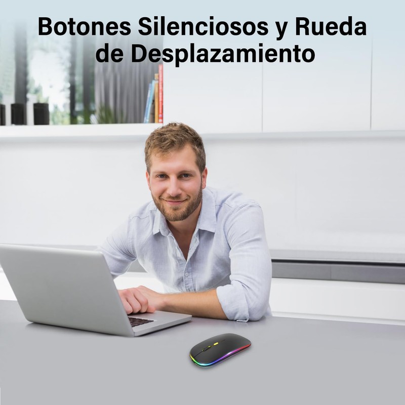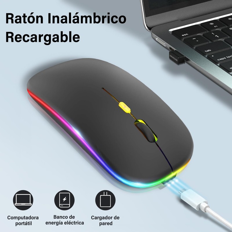 - 【Ratón Inalámbrico Recargable】Batería recargable ambiental de incorporada, por lo que puede cargar el ratón inalámbrico fácilmente utilizando el cable USB incluido. Puede usar cualquier equipo de carga con confianza, como el banco de energía, computadora, etc. La versión actualizada del ratón con las luces LED añade más diversión a la aburrida vida de la oficina