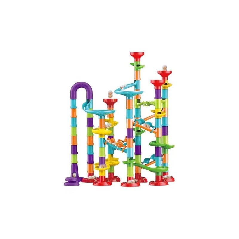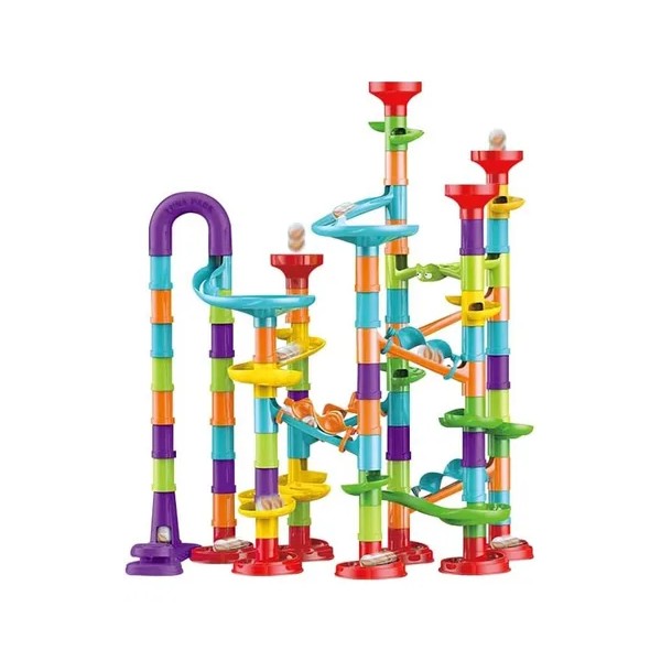 Los juguetes, que incluyen 30 canicas de vidrio y 83 bloques de construcción, desarrollan la creatividad de los niños, el reconocimiento temprano de la forma, el número y el color, la combinación cerebro - mano y la imaginación del espacio estructural, y disfrutan de los Juegos de carreras.