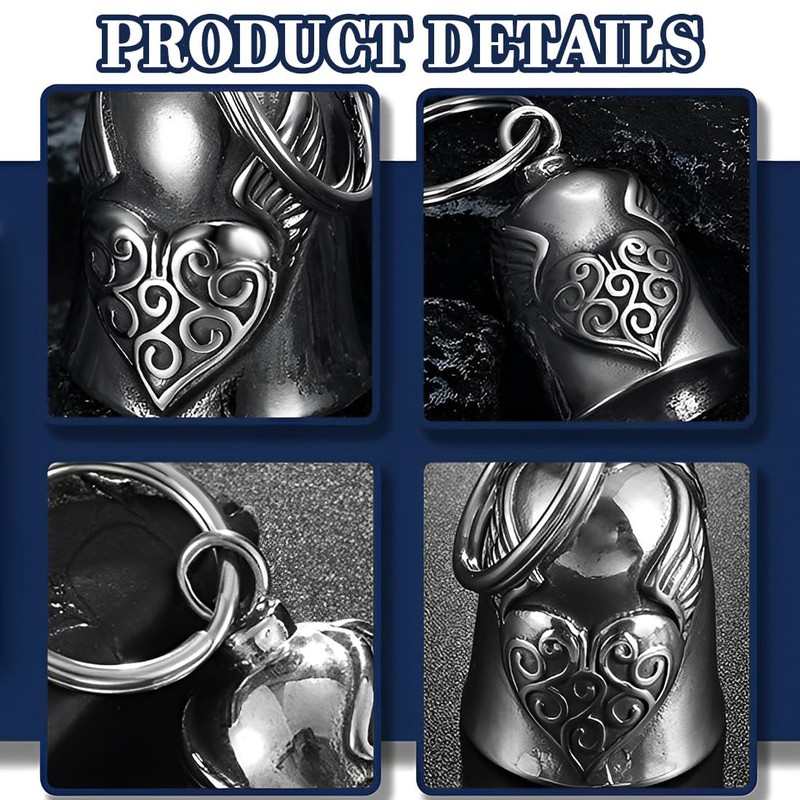 JUGUTA Guardian Bell Biker Bell, Motorcycle Bell Lucky Charm, Stainless Steel Heart-Shaped Bell, Protective Bell Angel Riding Bell, Motorcycle Bell Keyring for Blessing the Peace, Lucky Charm