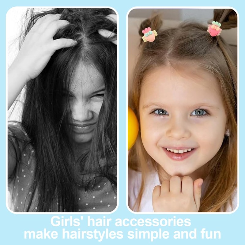 Juguta Pack of 80 Colourful Hair Bobbles Set, Cute Braid Bobbles for Girls, Colourful Hair Bands, Elastic Hair Bobbles with Flowers, Baby Hair Scrunchie Accessories Children - Random Pattern