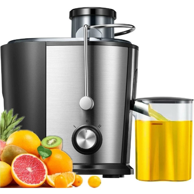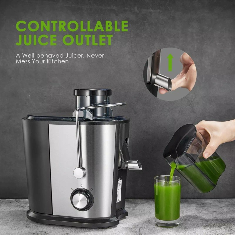 - TAMAÑO MÁS GRANDE Y MÁS FUNCIONES: Nuestra nueva máquina exprimidora está equipada con una jarra de jugo y un contenedor de pulpa. ¡Consigue el jugo de toda tu familia de una sola vez! Conducto de alimentación de 3” de ancho, se pueden poner frutas y verduras enteras para hacer jugo. Además, la tecnología antigoteo podría hacer que su proceso de uso sea más conveniente.