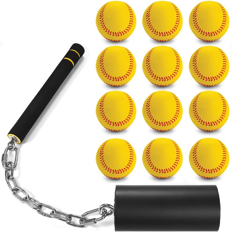 JUJINGYANG Baseball Softball Swing Trainer Bat, Baseball Hitting Trainer with 12PCS Training Balls, [New Upgrade] [Durable Training Aid] Baseball Softball Training Equipment