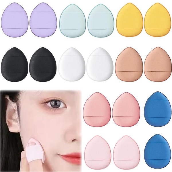 JUJUGO クッションファンデ パフ 指のパフ ミニ クッションパフ 水滴型 柔らかい 毛穴カバー 乾湿両用 メイクスポンジ 携帯 コンパクト 洗える (9色 18枚セット)