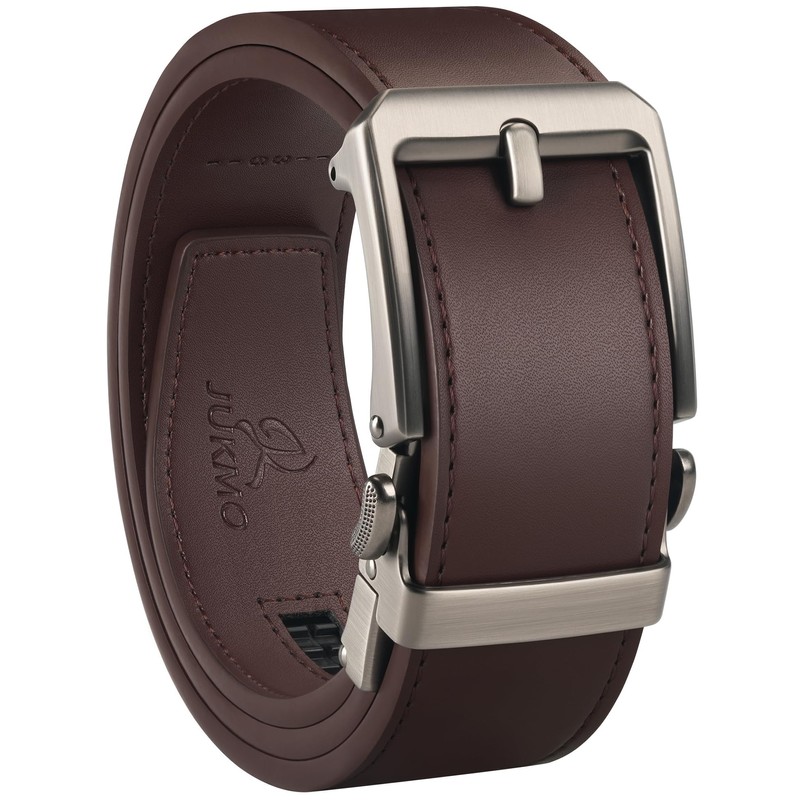 JUKMO 38mm Leather Ratchet Belt Mens Gift Boxed, dark brown