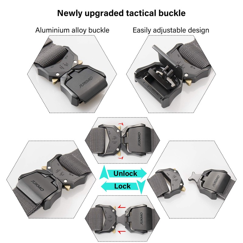 - QUICK RELEASE BUCKLE UPGRADED VERSIONThe crafted heavy-duty buckle, made of aluminium alloy, has very strong load-bearing capacity, which can meet your different wearing requirements. The upgraded part is that it is more convenient to adjust the length to perfect fit more than you can imagine. If you want to understand more intuitively how to be more convenient, you can watch our short tactical video.