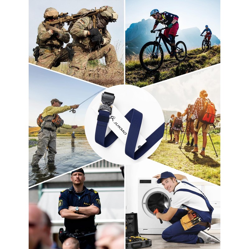JUKMO Tactical Belt, Military Hiking Rigger 1.5" Nylon Web Work Belt with Heavy Duty Quick Release Buckle (Blue, Medium-for Waist 36"-42" (Length 49"))