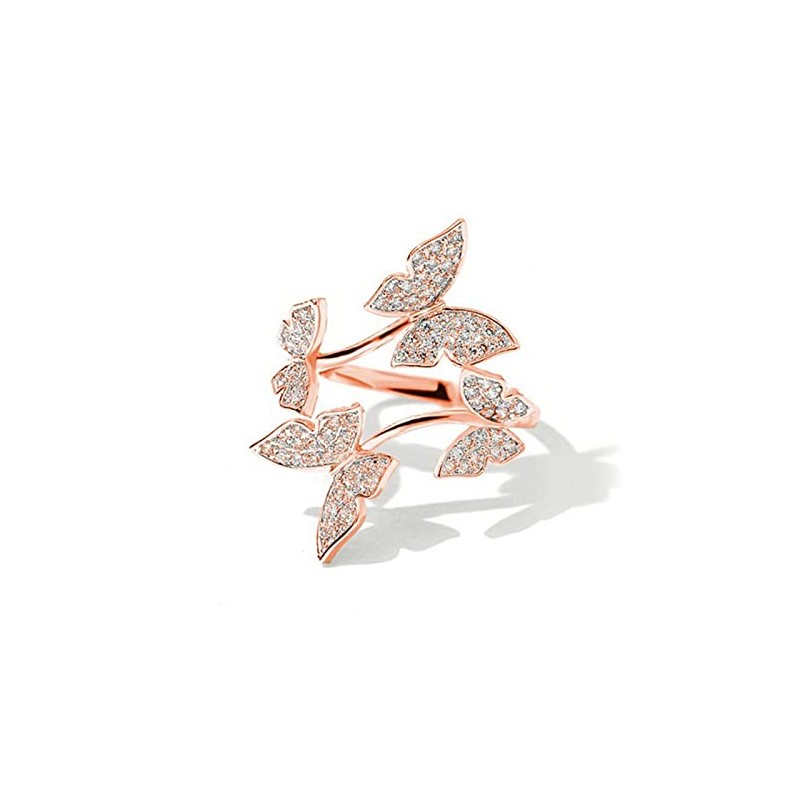 - Shiny and exquisite CZ crystal butterfly charm plated adjustable stacking rings gifts for women