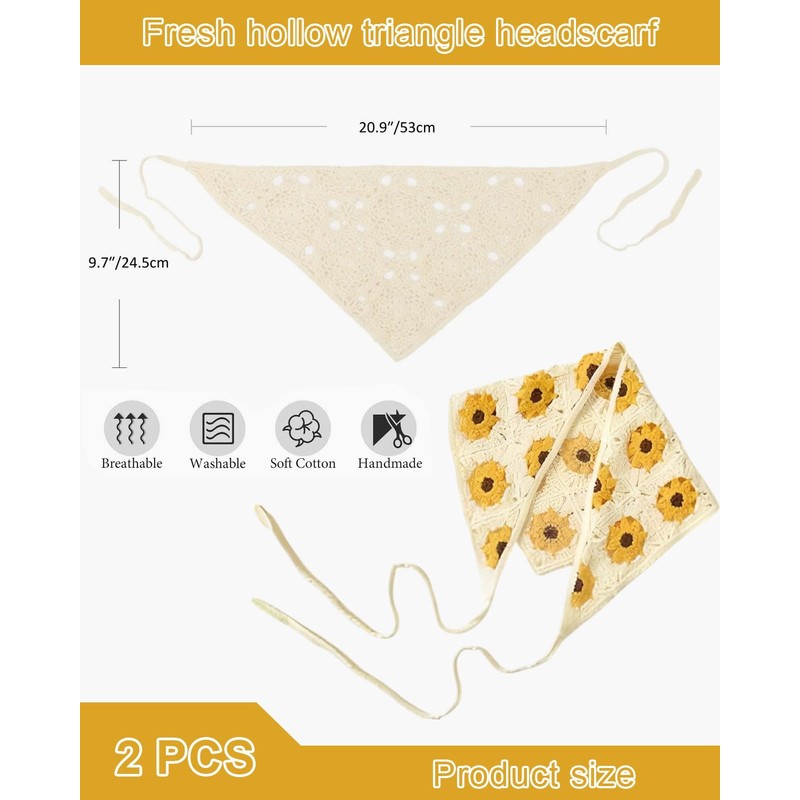 JUKOTA 2 PCS Damen Boho Stirnbänder Dreieck Kopftücher Bandanas Turban Krawatte Haarbänder Elastisches Gestrickter Haarschal für Frauen und Mädchen