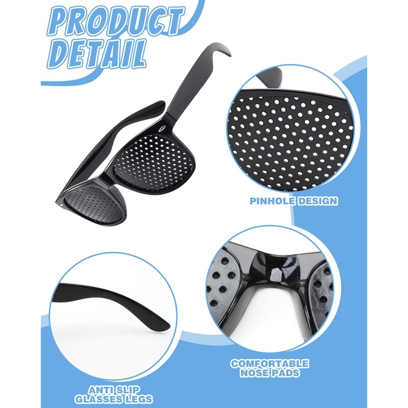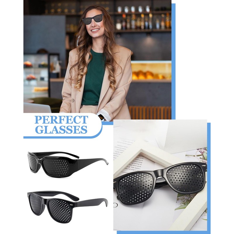 - ANTI FATIGUE GLASSES Our pine hole glasses are suitable for everyone as it can reduce eye fatigue and strain and promote blood circulation to the eyes. No optician is required for special adjustment. Our set of black hole glasses includes 3 pairs of black glasses and 1 pair of sports hole glasses, sufficient for long-term use or sharing with others.