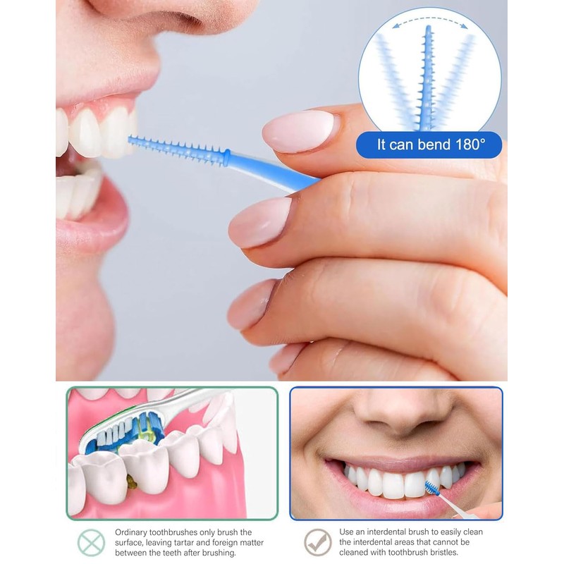Curved design: compared to straight interdental brushes, the curved shape of gum interdental brushes makes it easier to reach hard-to-reach places. And it can easily remove dirt and debris between the teeth