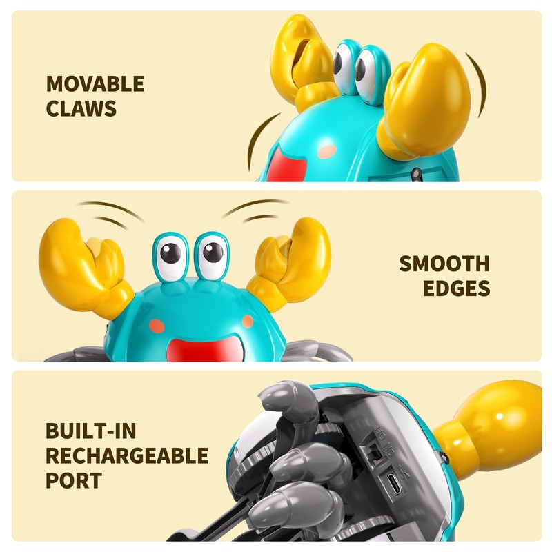 - Musical Crab Toy: The baby crawling toys for kids is crawling toys for babies 9-12 months. The crawling toys for girls features the nimble movement, glowing light of the eyes, interesting music to motivate kids to crawl, while the dancing crab toy walks