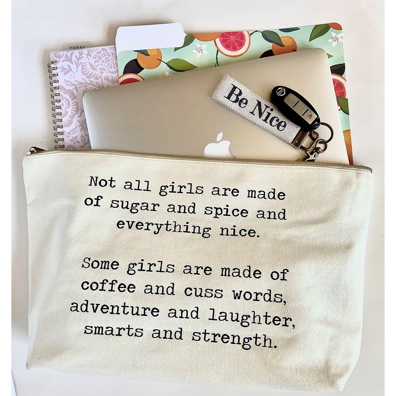 Jules Natural Canvas Extra Large Makeup Zipper Bag Not All Girls Are Sugar And Spice (Large - Extra Wide)