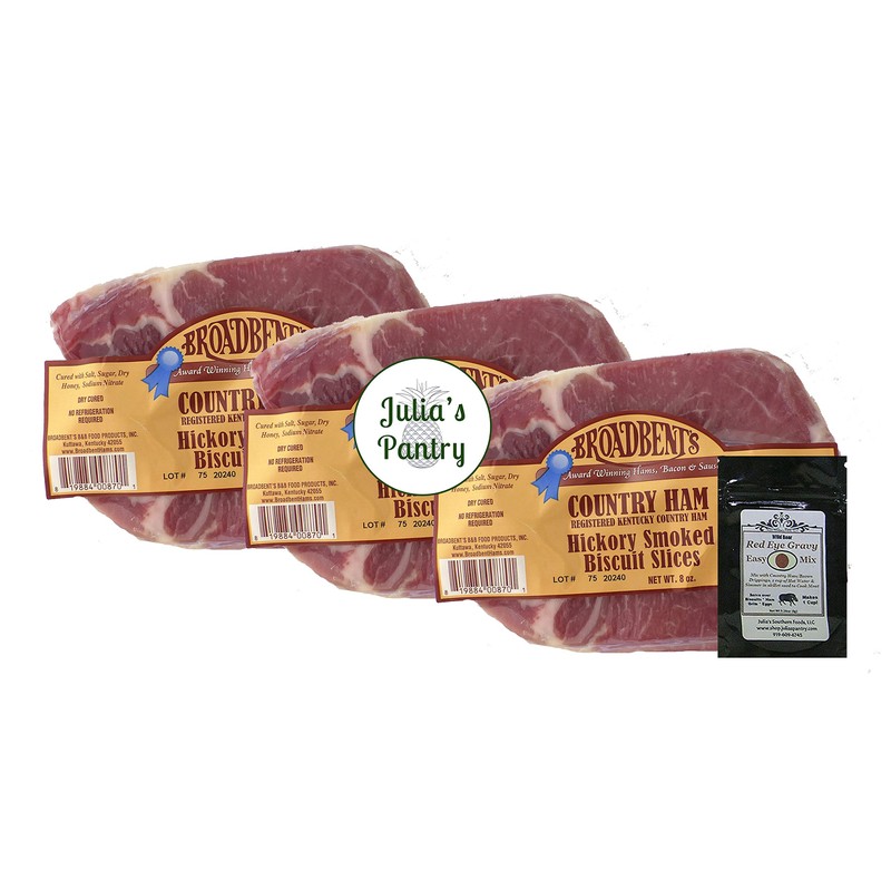 Julia's Pantry Smoked Country Ham Biscuit Slices 1.5 lbs and Red Eye Gravy Sample