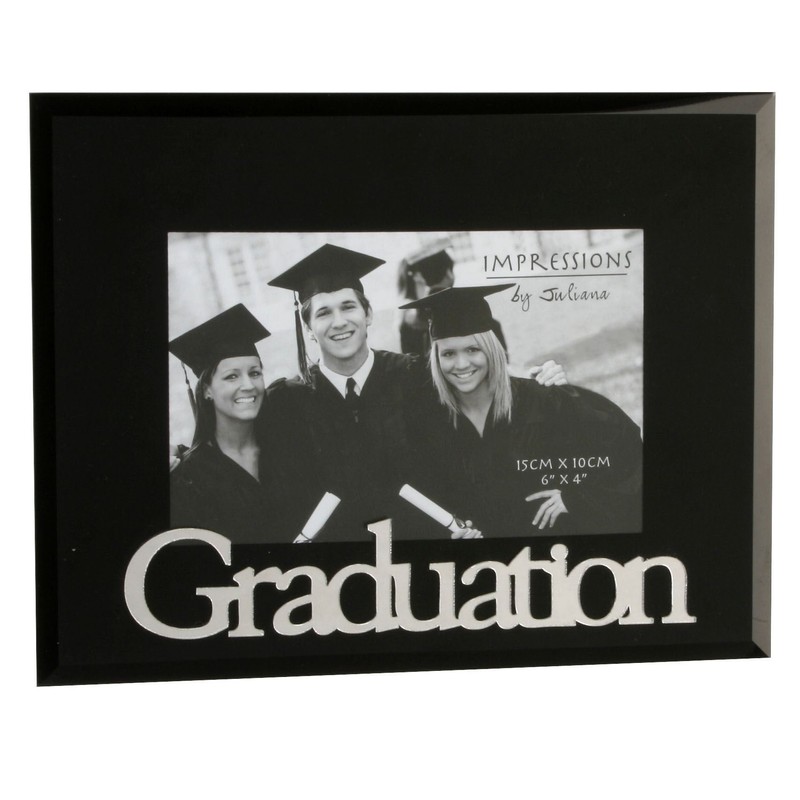 - A stylish black glass frame with mirrored wording "Graduation", displaying 6x4 images of your graduation
