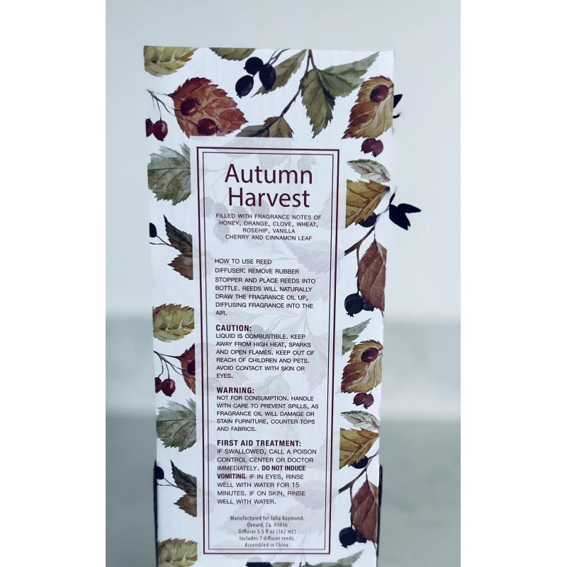 JuliaRaymond Fragrance Reed Diffuser ~AUTUMN HARVEST ~ 5.5fl Oz/162ml.