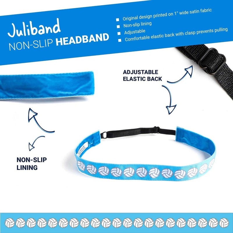 Julibands No-Slip Athletic Headbands | Volleyball Stripe | Blue