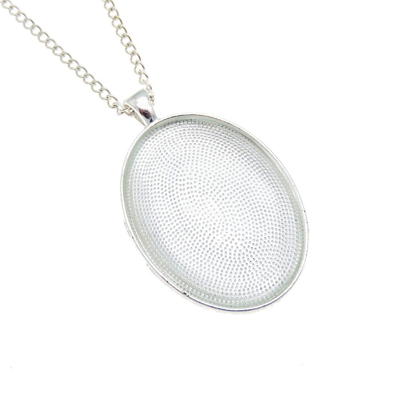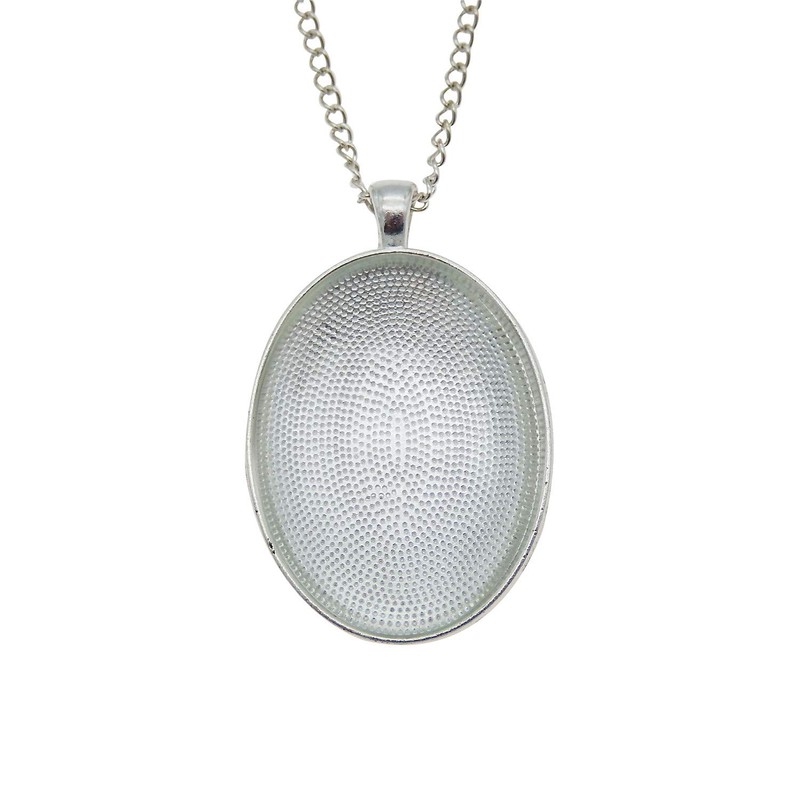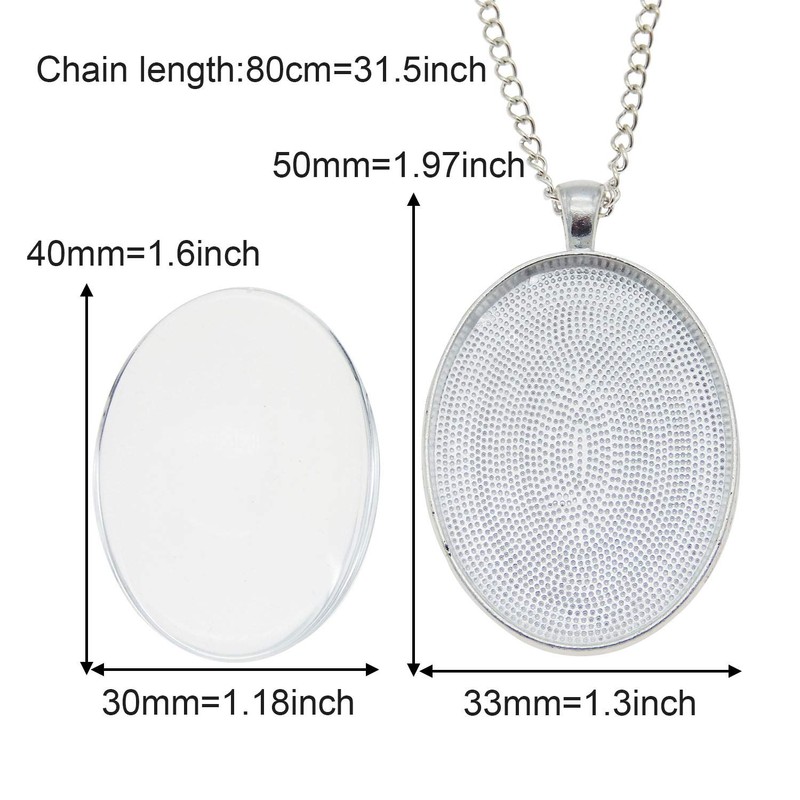 Julie Wang 10 Sets Oval Bezel Pendant Kit with Glass Cabochon and Chain for Jewelry Making Necklace Silver 40x30mm