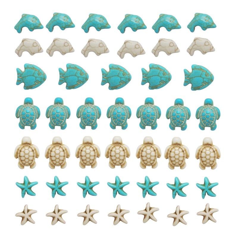 - Design:This set of bead charms contains fish, turtles, starfish, dolphins in blue, white colors, variety of shapes make it to be ideal accessory for summer ocean-themed jewelry making.
