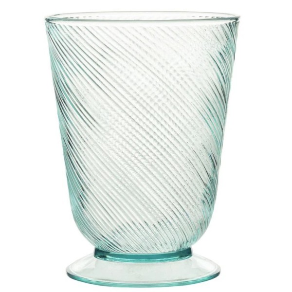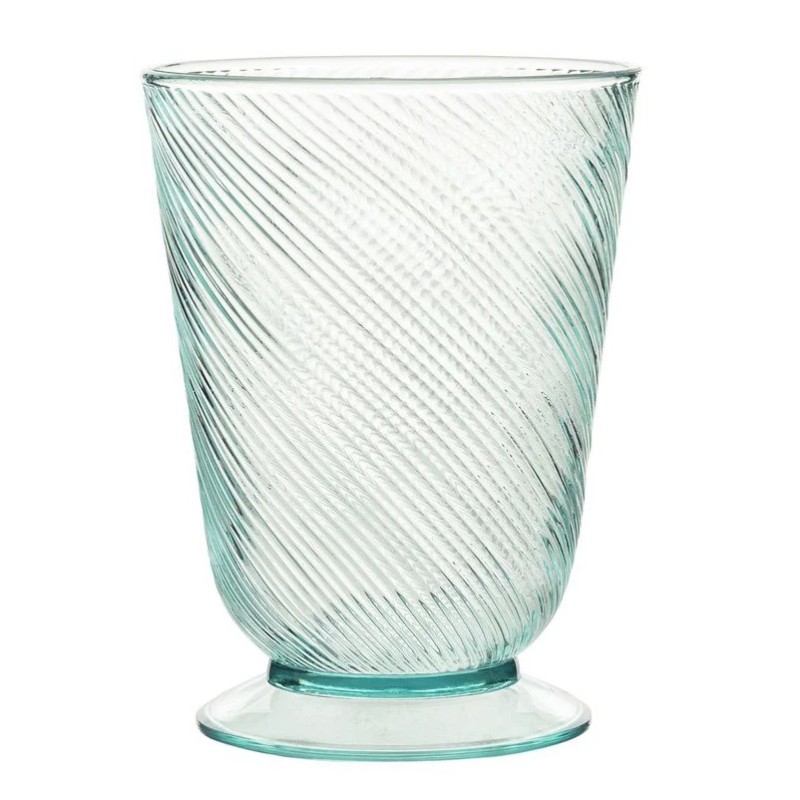 Lightly textured rippling like a pool of water makes for an elegant tumbler set atop a sturdy foot.