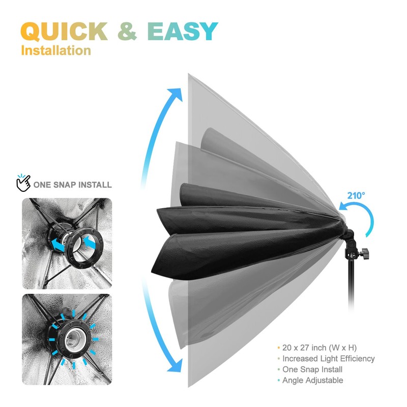 - ▶️ 【20 x 28 inch Large Softbox】 Highly Reflective Inner Surface for Maximized Light Transfer / Vertically Long Design to Cover Human Models and Any Tall Objects / Light Diffuser Modifier for Soft & Even Lighting