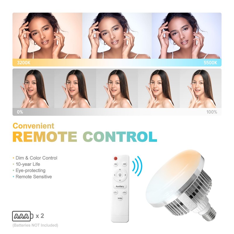 - ▶️ 【6,300 Lumen Super Bright LED】 85W the most Bright LED in Market / 3,200K–5,500K Color Control with Remote Controller / Highest Grade Energy-efficiency / High Color Rendering Index>90 / CE Certified