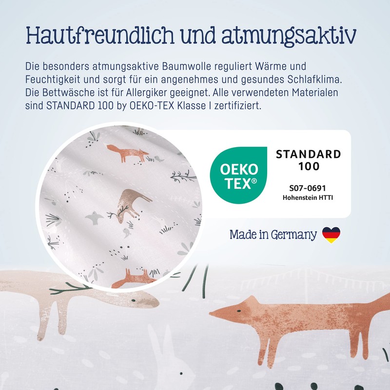 Julius Zöllner Woodlife Baby Bed Linen 100% Cotton, Standard 100 by Oeko-Tex, Made in Germany, Size 80 x 80 + 35 x 40 cm