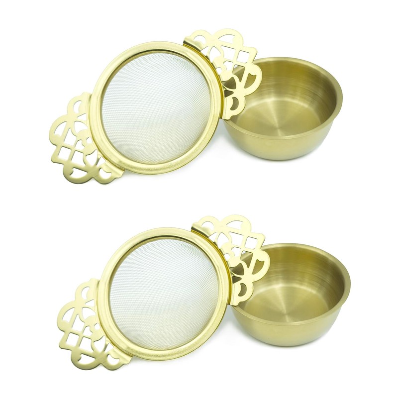 Juliyeh 2 Pack Filter Tea Mesh with Drip Bowls Tea Strainers Stainless Steel Strainer for Loose Tea Leaf Filter(Gold