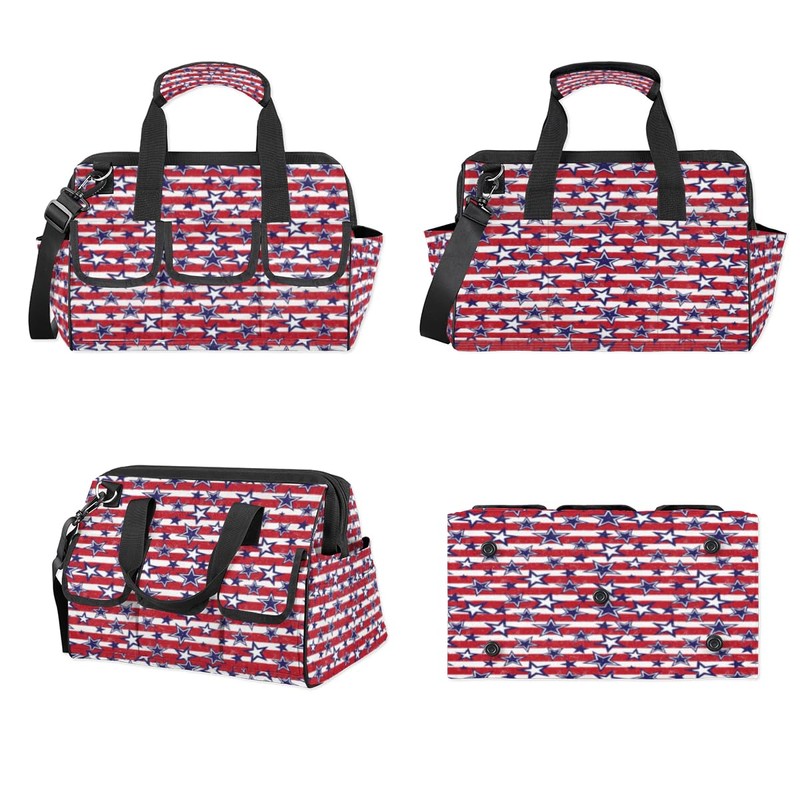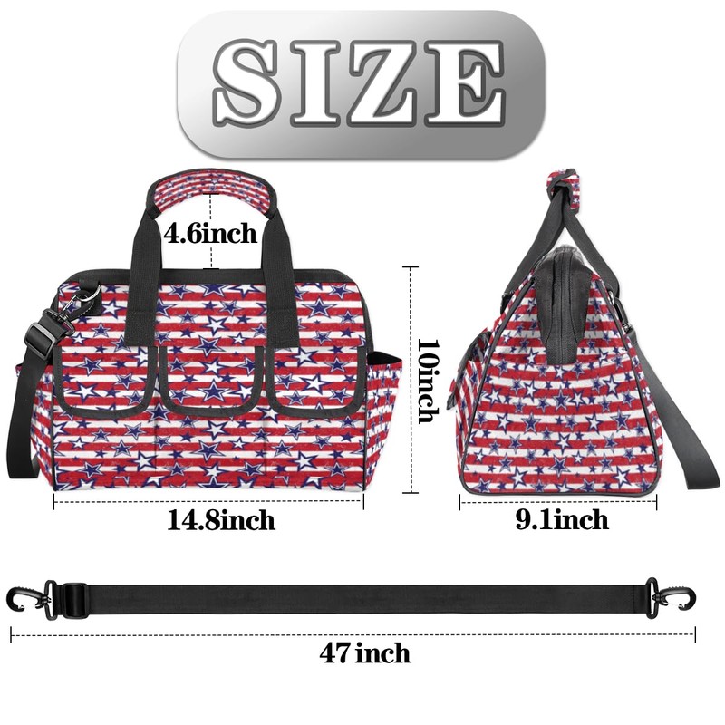 July 4th Holiday Patriotic 14 Pockets Tool Bags Heavy Duty Wide Mouth Tool Tote Bag Pouch USA Tool Organizer Bag with Adjustable Strape for Men Women 14.8 Inches